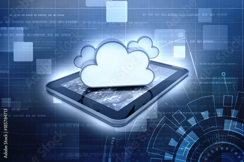 3d rendering Cloud Computing Concept, Cloud with Tablet