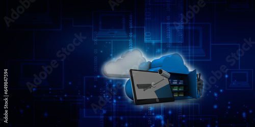 3d rendering Cloud folder locker with mobile phone connected cctv camera