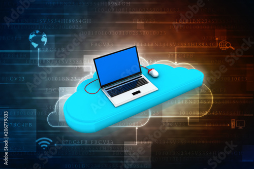 3d rendering Cloud online storage icons with laptop