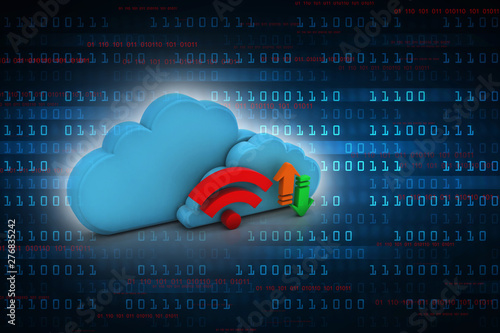 3d rendering Cloud online storage icons with WiFi