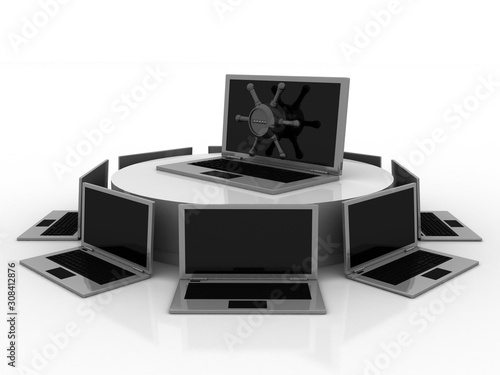 3d rendering Computer network with lock