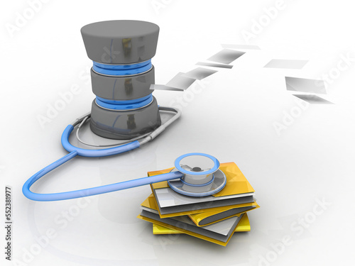 3d rendering Folder connected to database connected stethoscope