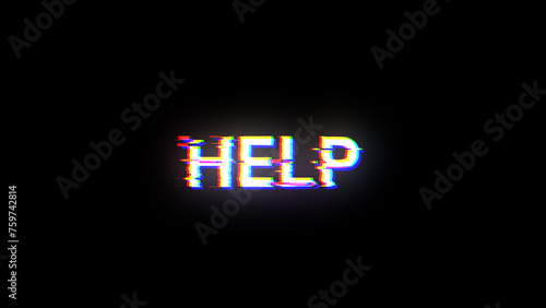 3D rendering help text with screen effects of technological glitches