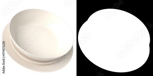 3D rendering illustration of a basic dinnerware set