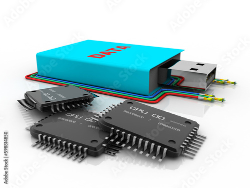 3d rendering microchips with pendrive