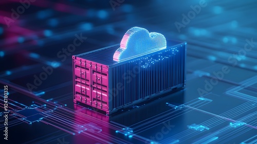 3D rendering of a cloud computing server box in a digital environment, representing data storage and network technology.