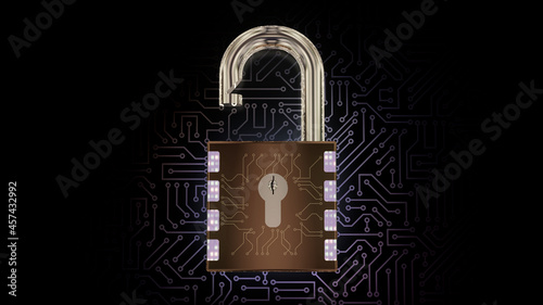 3D rendering of a combination lock. Cybersecurity of digital data, protection against hacker attacks and hacking of computer data transmission networks