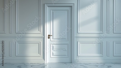 3D rendering of a white door on an empty wall background, minimal concept studio room interior design.