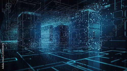 3D rendering of abstract digital technology background. Big data connection concept.Generative Ai