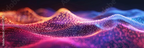 3d rendering of abstract digital wave with particles in it. Futuristic background of glowing particles with depth of field and bokeh. Big data visualization.