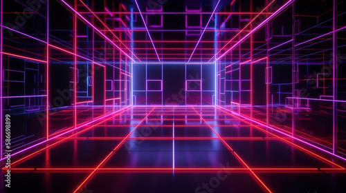 3d rendering of brightly glowing lights in triangular shapes. Generative Ai