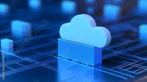 3D rendering of cloud data server and containers, representing cloud computing and digital data storage concept.