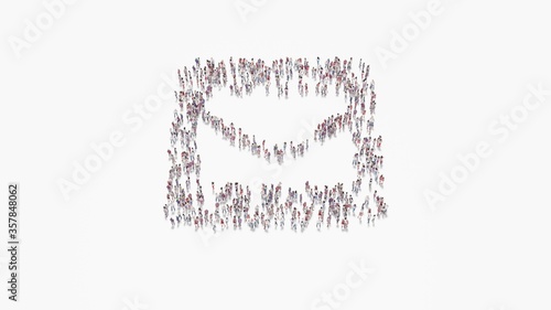 3d rendering of crowd of people in shape of symbol of envelope square on white background isolated