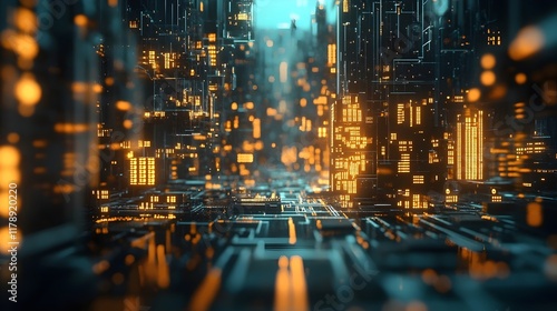 3D rendering of digital binary data flowing on a microchip, symbolizing data processing, advanced technology, and digital systems in modern computing