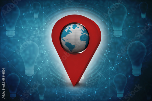 3d rendering Red map pointer with world map