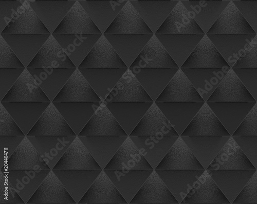 3d rendering. Seamless Black Triangular shape pattern wall background.