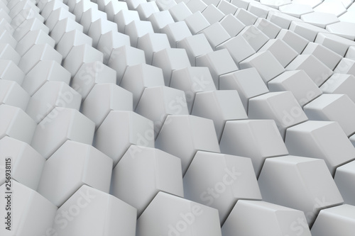 3d rendering, white hexagon cubes, Computer digital drawing