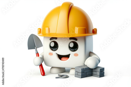 3d smiling helmet the builder character on a white background. ai generative
