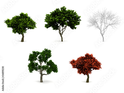 3d trees pack isolated on white.