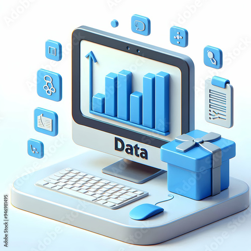 3D Vector Illustration of Computer Screen with Bar Graph and Data Concept