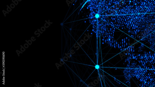 3d wireframe globe made of dots on a black background. Tech background. 3d rendering