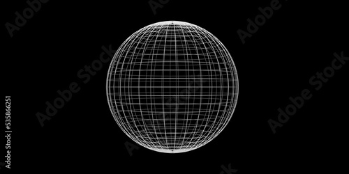 3D wireframe globe or sphere isolated on black background, visualization of geography or navigation concept with latitude and longitude coordinates