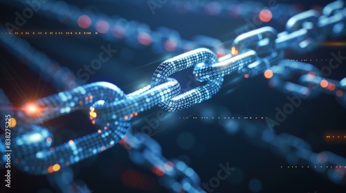 3D wireframe model of random numbers broken in a chain, abstract tech background, concept of blockchain hacking or cryptocurrency crash.