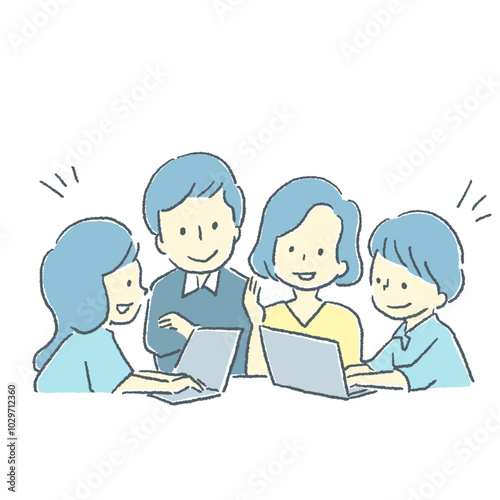 4人で会議をする男性と女性の素材イラスト