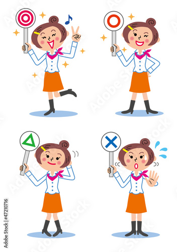 4種類の札で回答する女性