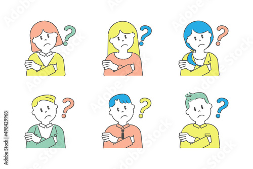 腕組みをして首をかしげているいろいろな人4 男性 女性 カラー