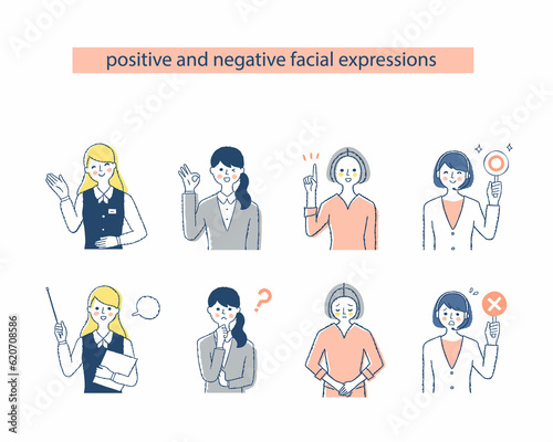 4人のビジネスウーマンの表情 ネガティブ&ポジティブ