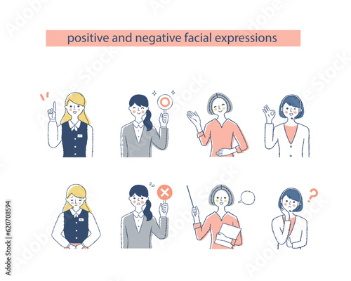 4人のビジネスウーマンの表情 ネガティブ&ポジティブ