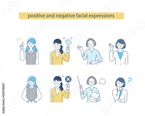 4人のビジネスウーマンの表情 ネガティブ&ポジティブ