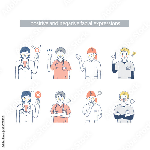 4人の医療従事者の表情 ネガティブ&ポジティブ