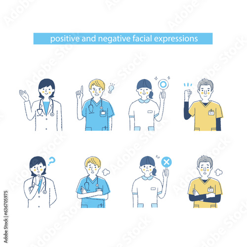 4人の医療従事者の表情 ネガティブ&ポジティブ