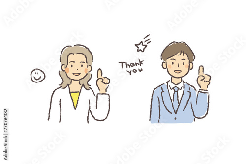 ここがポイントです、と指で示しているポーズの男女のイラスト_4