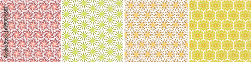4 pcs vector pattern illustrations, abstract, fan, round