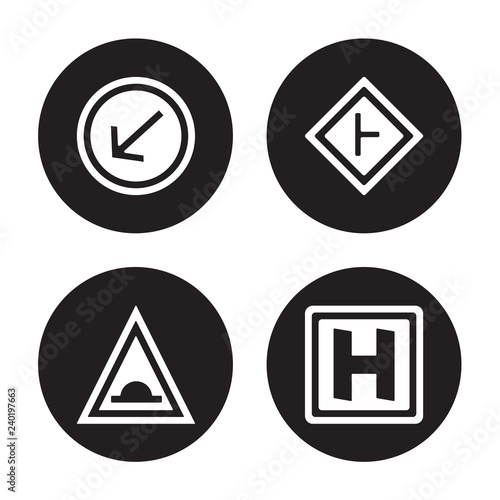 4 vector icon set : Keep left, Humps, Intersection, Hospital isolated on black background