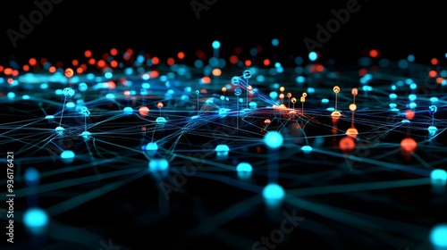 41. A 3D model of a smart network with interconnected nodes and real-time data exchange
