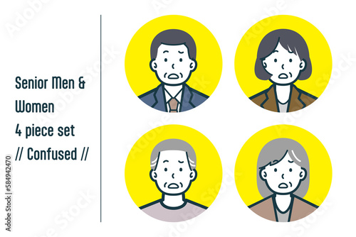 困惑しているシニア男女の4点セットno.1