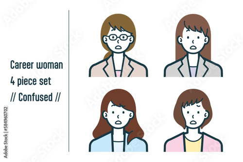 困惑しているキャリアウーマンの4点セットno.1