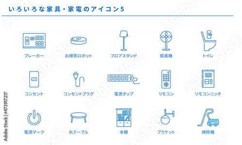 いろいろな家具・家電のシンプルアイコンセット5、ベクター