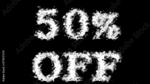50% Off cloud text effect black isolated background. animated text effect with high visual impact. letter and text effect.