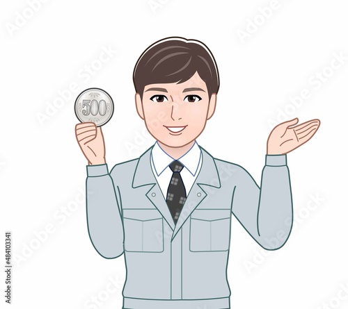 500円玉をもつ男性