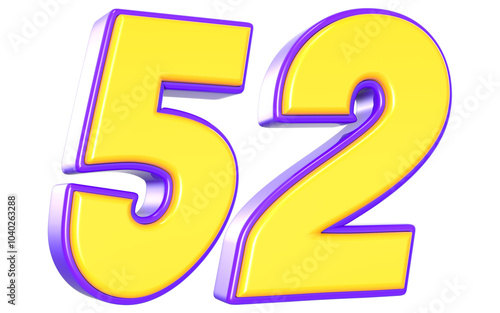 52 Number 3D Yellow And Purpale