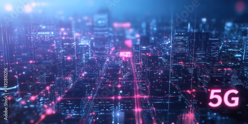 5G Network Cityscape: Futuristic Smart City Digital Infrastructure
