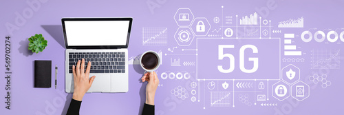 5G network theme with person using a laptop computer