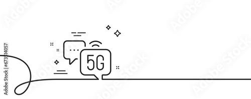 5g wi-fi internet line icon. Continuous one line with curl. Wifi wireless network sign. Mobile chat symbol. 5g internet single outline ribbon. Loop curve pattern. Vector