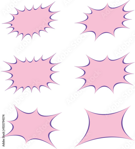 6種類のピンクに紫の線のトゲトゲの吹き出し
