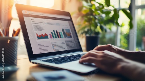 6. A close-up of a laptop screen showing a website with an engaging banner ad